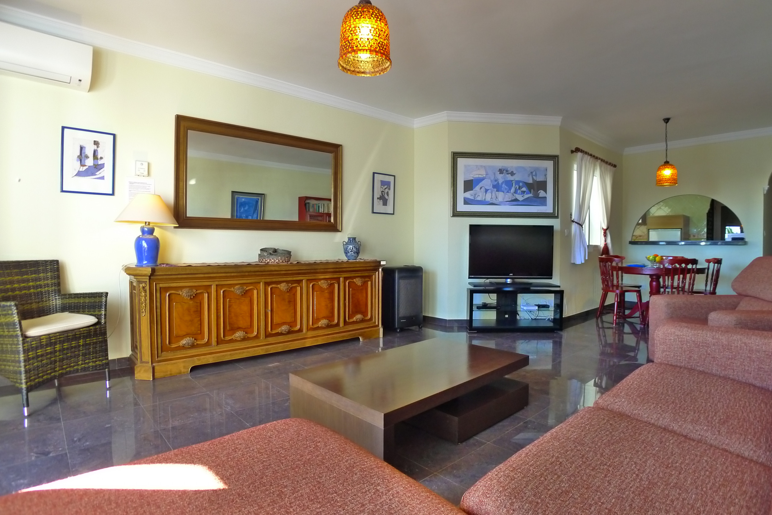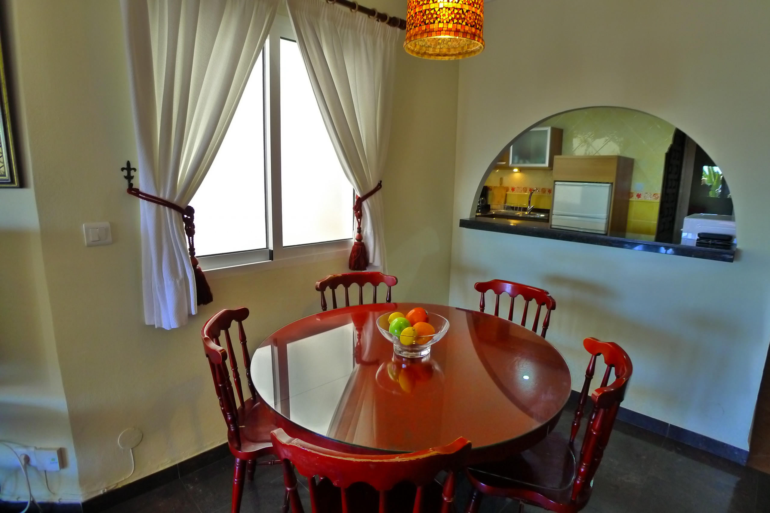 Dispone de 3 dormitorios (todos con camas dobles, armarios empotrados y aire acondicionado), un baño y un salón/comedor con Smart TV(amplia lista de canales internacionales) además tiene WIFI (fibra óptica). El salón da a una magnifica terraza con mesa y sillas para comer, mientras disfrutas de unas maravillosas vistas.
